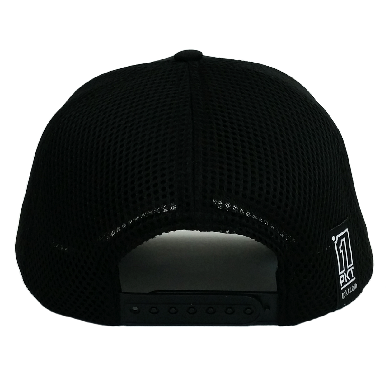 The iconic 1PKT logo is 3D embroidered offset on the front. This hat is made of out 100% polyester, which resists stains and limits shrinkage when washed. The polyester mesh is soft and stretchy for a comfortable fit. This cap has a low-medium profile and a curved brim. The closure is snapback for one size fits most (may not fit XL size heads, opt for L/XL stretch fit hat instead).